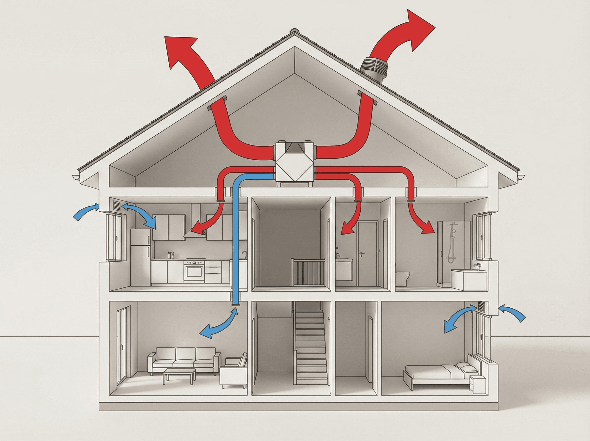 VMC Simple ou Double Flux : évacuez l'humidité et ne jetez plus vos économies de chauffage par les fenêtres.